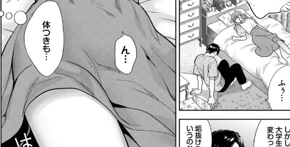 無防備な子供の頃から知ってる女の子が太ももを出し目の前で酔って寝ている