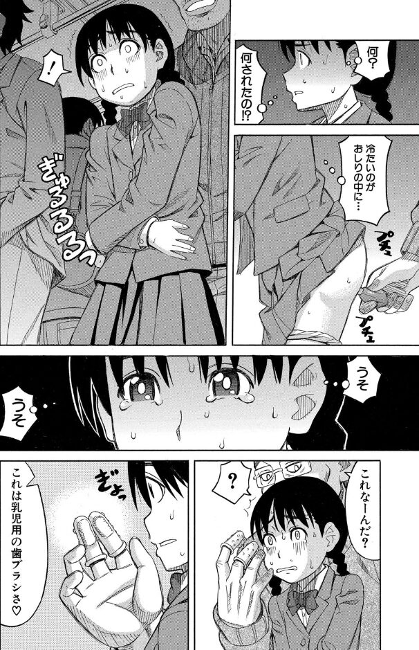 【エロ漫画】女子○学生電車登校中に痴漢⁉エスカレートしていく痴漢。友達が守ってくれたけど今度は友達も餌食に