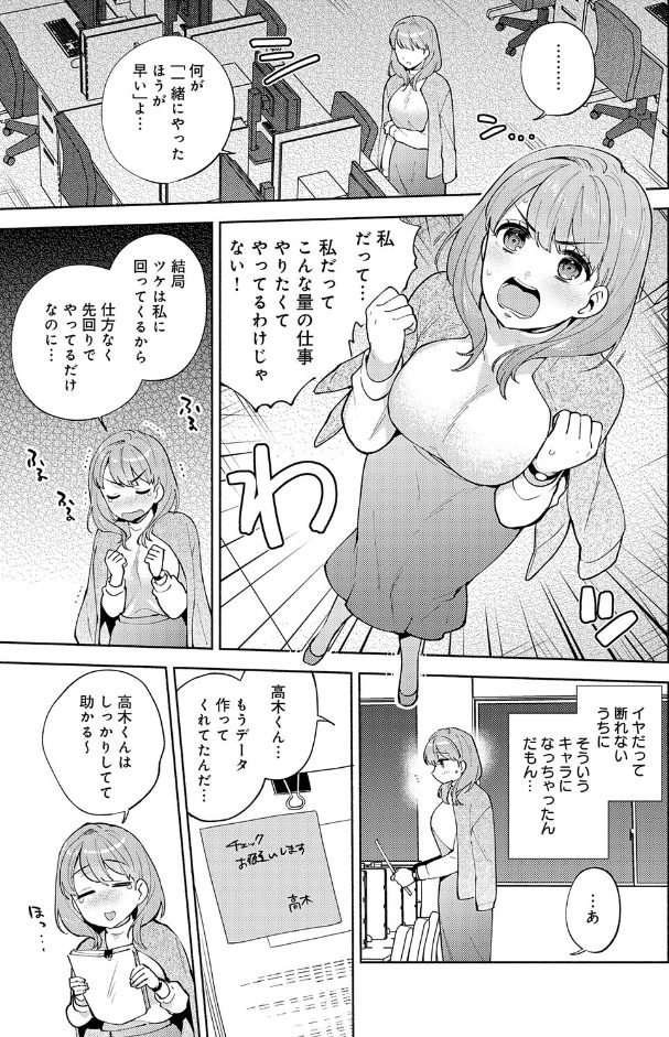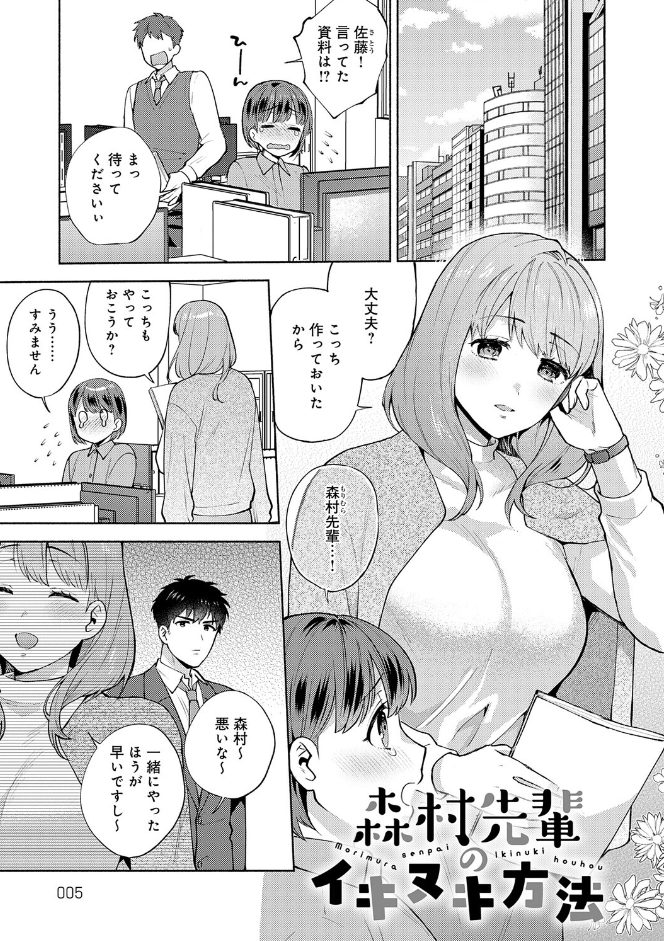 オフィスでストレスを発散するオナニーに耽るくらいに爆発寸前。しかしそれを忠実な後輩男子の高木に見られてしまい、ヤケ気味に「高木くんも恥ずかしいところ見せて」と食ってかかり…!? 『森村先輩のイキヌキ方法』