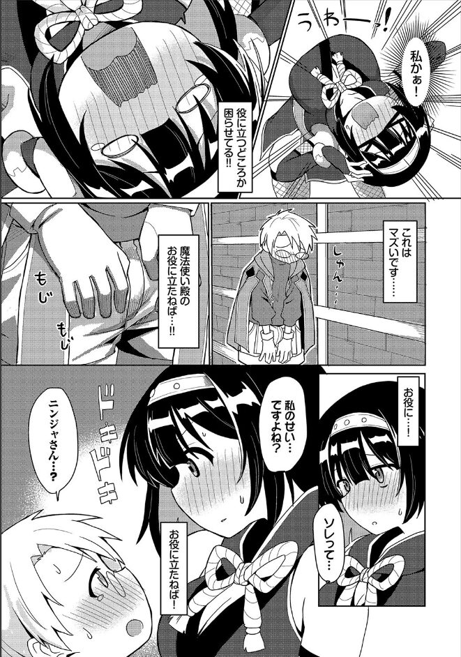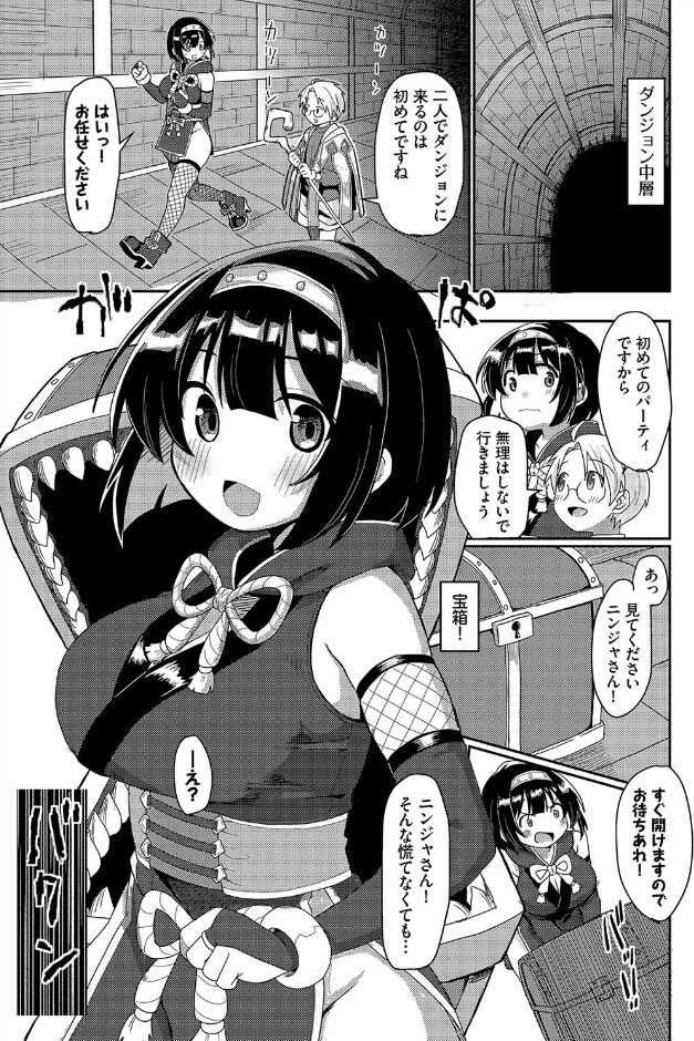 ダンジョン攻略チームを追放された、むっちり体型のトジっ娘忍者。居場所をなくした彼女を拾ったのは、心優しい新人魔法使い。ところが罠にかかり、お尻を突き出してしまう忍者娘。その姿に思わず反応してしまう魔法使いを見て、彼女は「この身体で役立てるなら…」と自ら誘惑を仕掛ける!